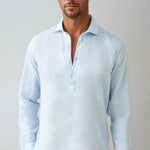 Lanena pop-over košulja – Svijetloplava spaja sofisticiranu eleganciju s maksimalnom udobnošću. Lagani laneni materijal osigurava prirodnu prozračnost, dok fin pop-over dizajn donosi modernu notu stila.